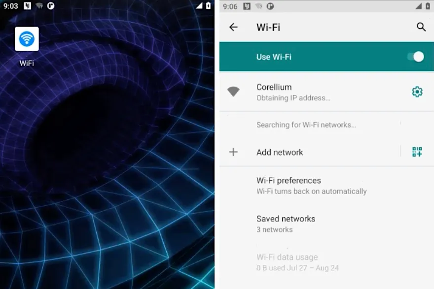 The app appears named as “WiFi” and features a white wireless icon in a blue circle on a white background.