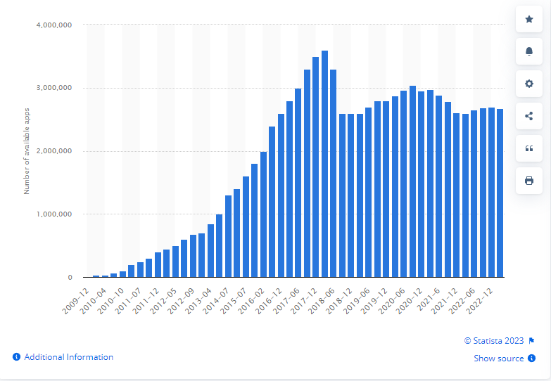 In fact, the Google Play Store had reached 3,600,000 applications in 2016, but then Google also started deleting applications for various reasons, similar to Apple.
