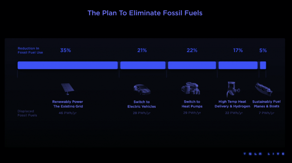 All cars will be fully electric and autonomous,” Musk said, once again arguing that internal combustion vehicles will soon be treated with the same disdain as horses and carriages. He also announced possible plans to electrify aircraft and ships. “As we improve the energy density of batteries, you will see all transportation become fully electric, with the exception of rockets,” he said. No further details were announced as to when or how this might be achieved.